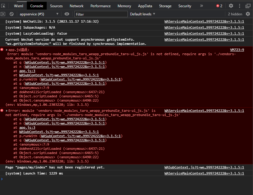 npm run dev:weapp启动生成临时文件,微信开发者工具运行时,提示报错,未获取到相关的JS文件